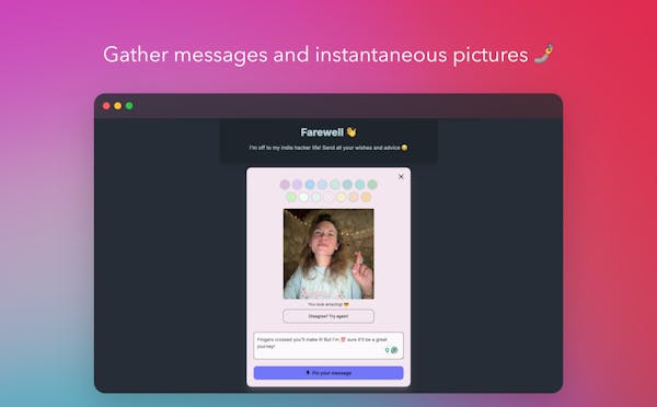 The ultimate digital memory box that collects messages and curates them into a beautiful keepsake and guestbook. Let people add notes, thoughts and memories with instant pictures ⚡️Hello fellow makers!
