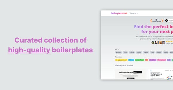 Check out BoilerplateHub - your go-to Website for the best Coding Starter Kits. We've curated high-quality boilerplates (by real humans; I swear we're not reptiloids). You can find an ideal starter kit by selecting the tech stacks or needed features.