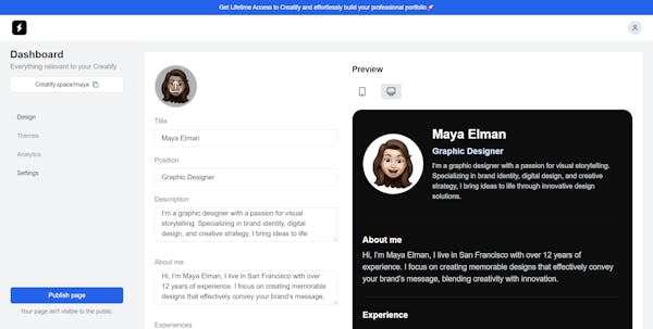 Congrats on the launch 🚀@crebuh Thank you Christofer! I am planning on doing that in the future😊Congratulations on your launch. The UI looks awesome. By the way, With the growing number of platforms available for building online portfolios, how does Creatify plan to differentiate itself and sustain its business in such a competitive market?@yubarajthapa Thanks for the feedback! Creatify sets itself apart by being super easy to use and highly customizable. We focus on making it simple for anyone to build a professional portfolio quickly and without any tech hassles. Our goal is to offer unique features and great support that help users stand out and attract clients. We'll keep improving based on what our users need to stay ahead in this crowded market.