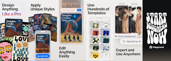 Playground lets you design anything with the power of AI. Start from hundreds of pre-designed templates and dozens of different styles that allow for infinite editing.