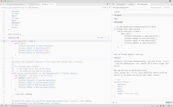 As a Zed user, I'm super stoked for this launch β just as I was starting to explore Cursor! The integration w/ Claude 3.5 Sonnet is also excellent.Wait this is open source...O.O that's wild. I was gonna mention how this looks like Cursor, but dang this looks so polished. I know my engineers would love something like this.I have heard a lot about Zed, impressive to see Zed enables AI, just curious does it support vim modes?I've been using this all morning and I'm really enjoying it. Even setting aside the LLM integrations, the responsiveness of the editor is just incredible. Congrats on the launch!