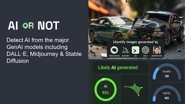 AI or Not is an AI detector trusted by 100k+ users that checks for AI generated content in images, audio, KYC identity documents and more. We help businesses stop fraud, power content moderation and prevent KYC scams.