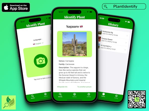 #PlantIdentification#PlantDetector#ArtificialIntelligence#FreeToUse#Multi-languageSupport#SaveIdentificationHistory