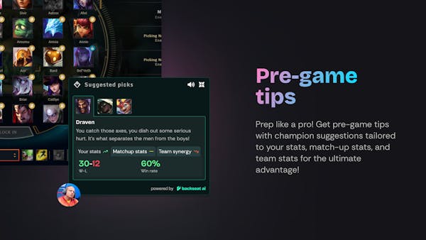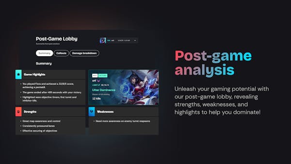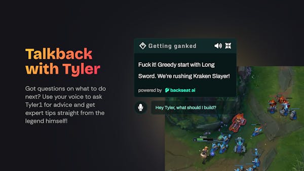 Co-founded by Tyler1, the top League of Legends streamer, get real-time coaching, stats and vibes to level up your gaming experience!