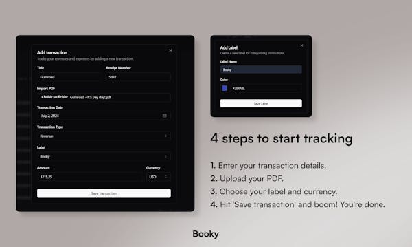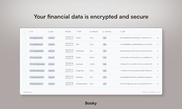Booky makes tracking business finances a breeze! Organize income and expenses fuss-free. Your data? Encrypted and secret. Your wallet? Happy. Perfect for entrepreneurs who'd rather hustle than juggle numbers.