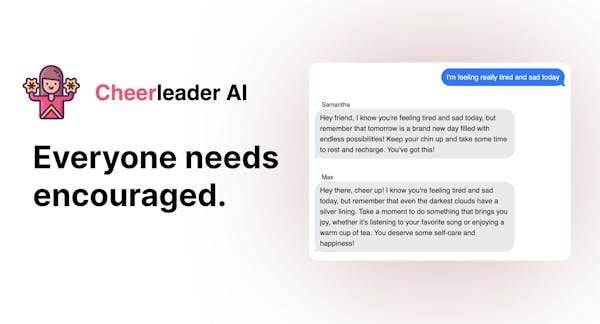 π£ Get the ultimate cheerleading experience with Cheerleader AI! π Boost your motivation and productivity with your very own virtual cheerleader! πͺπ― Developed by AE Studio, this AI tool is here to lift your spirits and increase your emotional well-being.