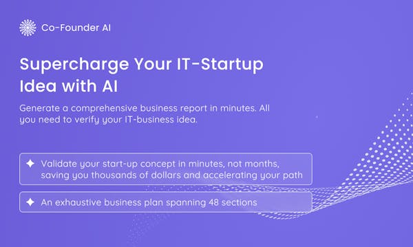 You've got this cool idea, but you're not an expert in tech, marketing, sales or business planing? Tired of chat bots? Co-FounderAI will create a 48-section business idea report that will help you verify idea viability and show you the path!🚀
