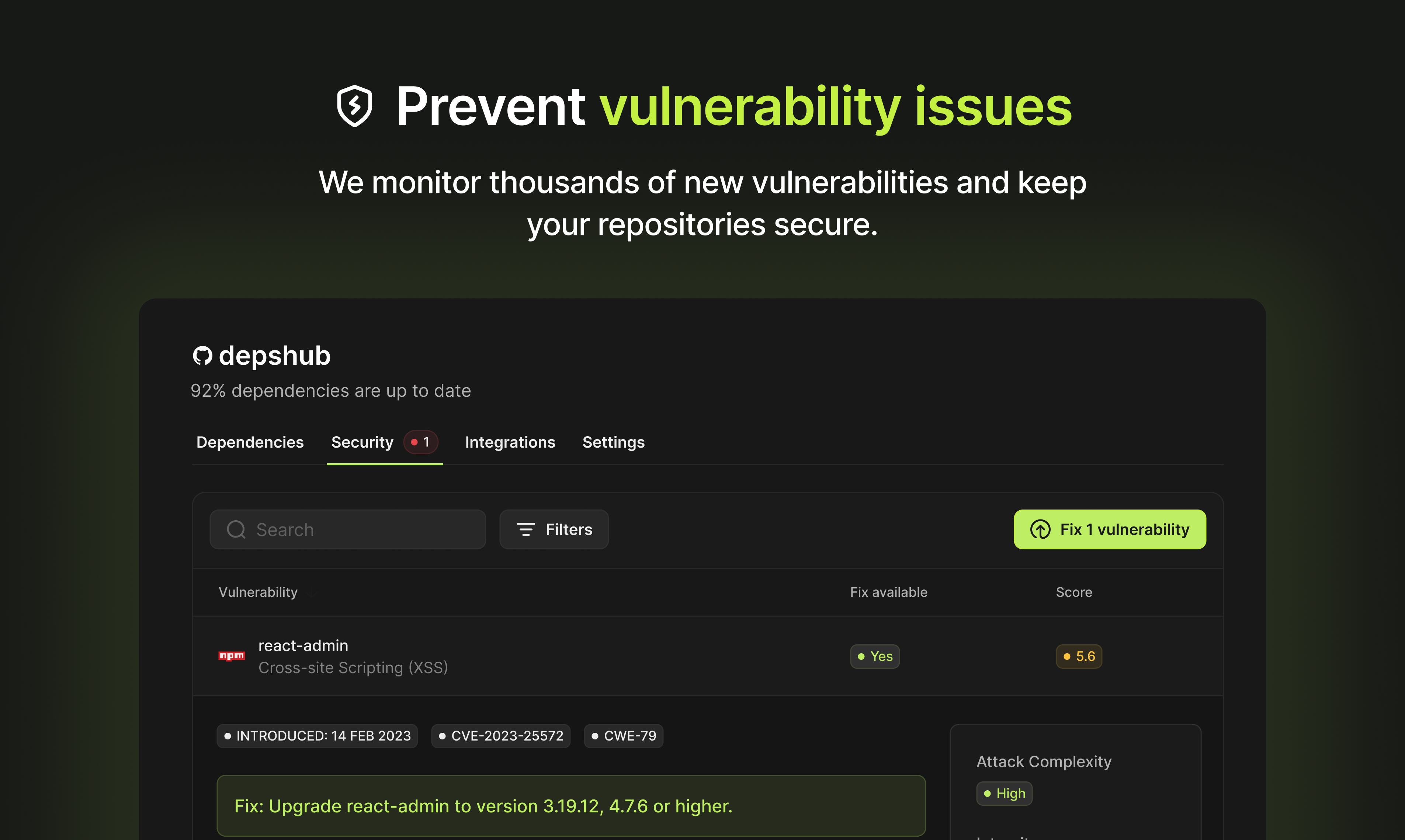 DepsHub is an AI-powered tool for developers to help keep your repositories up to date and secure. Want to migrate to a new major version of any library? Do it in seconds with DepsHub.