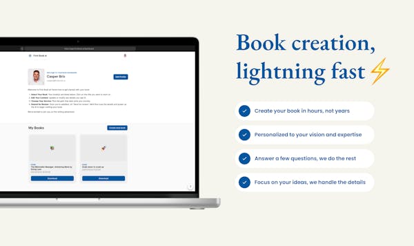 Accelerate your career—become an author today, effortlessly! 📖 With our AI platform, you don’t have to sacrifice years to write your first business book. Just answer a few questions and turn your idea into a finished book in hours! 🤖⚡️