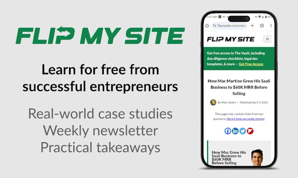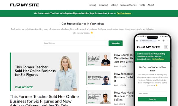 Flip My Site publishes a weekly newsletter for builders, creators, and investors. Each issue (completely free) shares an inspiring success story or article related to building, growing, buying, or selling an online business.