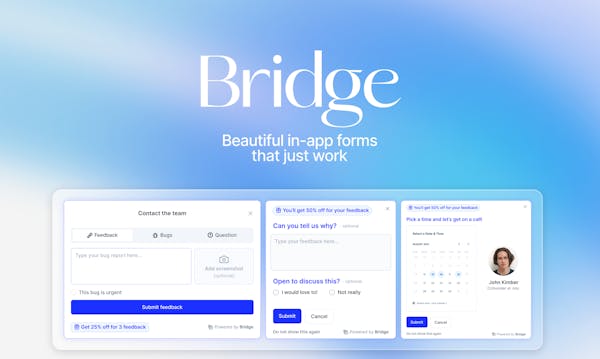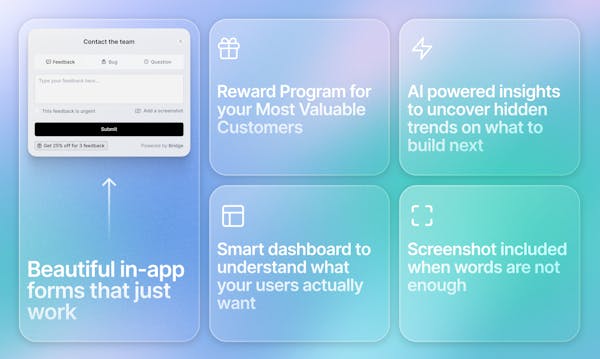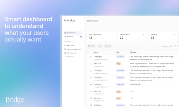 User Feedback is the single most important source of truth to get to Product-Market fit, yet talking to users is really hard. We aim to Bridge the communication gap between users and creators with easy to launch beautiful forms inside your website or app.