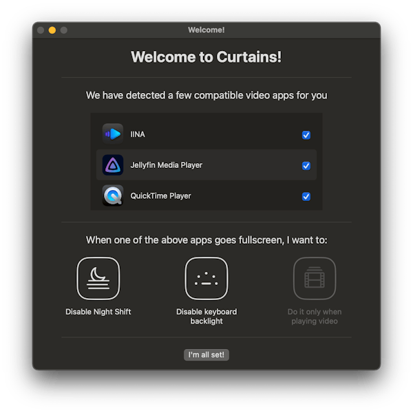 #Macos#Productivity#Automation#NightShift#KeyboardBacklight#Movies#Fullscreen#App#Software