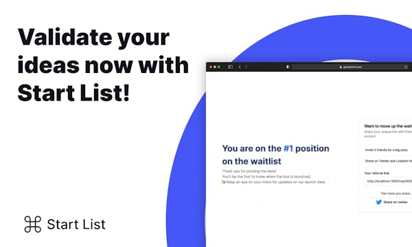 Start List is here to revolutionize the way you validate your business ideas. Designed for founders with a lot of ideas, this powerful tool allows you to focus on the marketing aspects and starting getting quickly early adopters with a waitlist system.