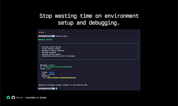 Daytona: Open-source dev environments manager that supercharges productivity by automating project setup with one command. A Codespaces alternative putting you in control. Backed by angels from Postman, Netlify, Supabase, StackOverflow and more! 🌟