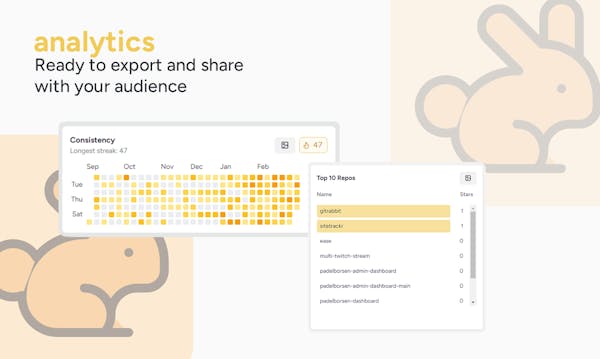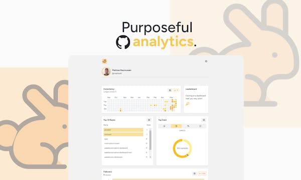 GitRabbit is an affordable and simple tool to help track your GitHub activity, consistency with purposeful analytics. Boost your indie hacker workflow and stay on top of your progress. Start optimizing your GitHub experience, and get that top leaderboard spot!