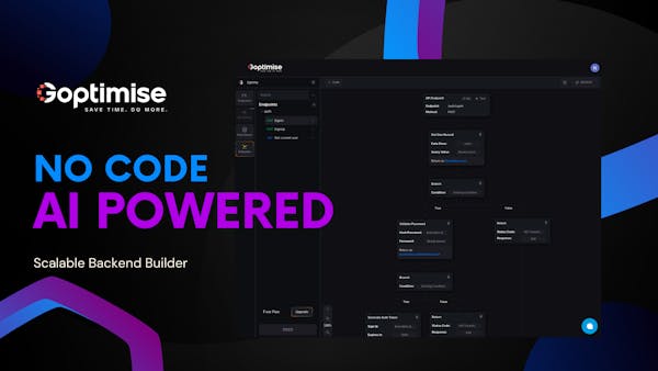 Goptimise is a No-code Backend Builder offering dedicated infrastructure, a visual builder, extensive third-party integrations, and advanced AI generative functions. It's designed to effortlessly create scalable APIs tailored to meet any business requirement.