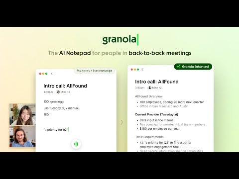 Granola is an AI-powered notepad that makes taking & using meeting notes a breeze. It blends your own notes with smart transcription to capture every detail. With its simple design, advanced AI, Granola ensures your notes are not just recorded, but useful.