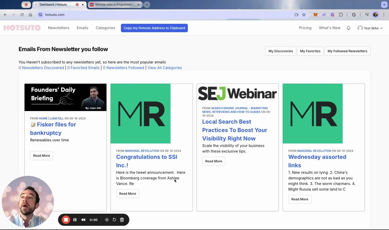 Hotsuto gives you a unique burner email to use to sign up for your favorite newsletters, so you don't even have to worry about cleaning up your inbox. They all end up here in an easy to navigate and manage blog like infrastructure