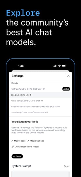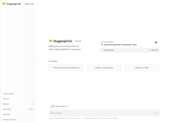 Unleash the potential of top-notch artificial intelligence with HuggingChat, offering seamless communication between users and several groundbreaking large language models (LLMs) from multiples providers like Mistral AI, Meta and Google.