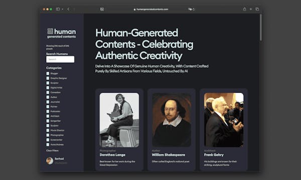 Human Generated Contents is a directory listing the best in the field. As the gap between the work of humans and computers is closing, it is becoming more and more important to have a place where human content is listed.