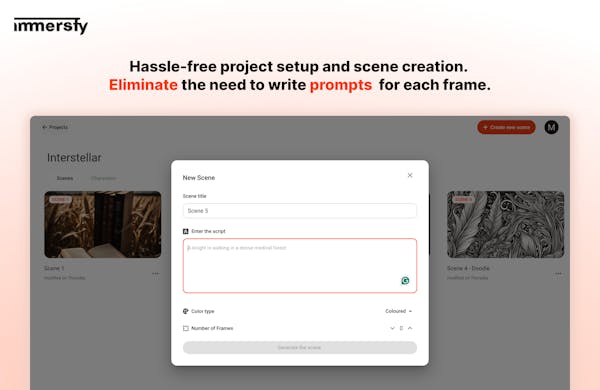 Immersfy turns scripts to storyboards in minutes. It analyzes, breaks down scenes, and creates visual masterpieces, saving 80% of your time and 50% of your costs. With powerful customization features, you maintain full control over tone, style, and context.