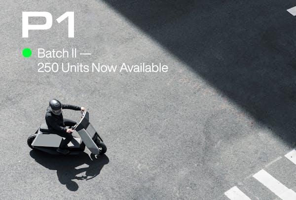 P1, our first product, is a radical new personal electric vehicle, pairing a cutting edge industrial design with breakthrough performance and utility. Batch II is now open for 2025 deliveries.