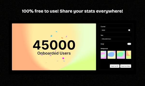 Animated Statistics Maker is a 100% free tool that generates beautifully animated stats that you can share in your sales pitch and customer onboarding to keep viewers engaged