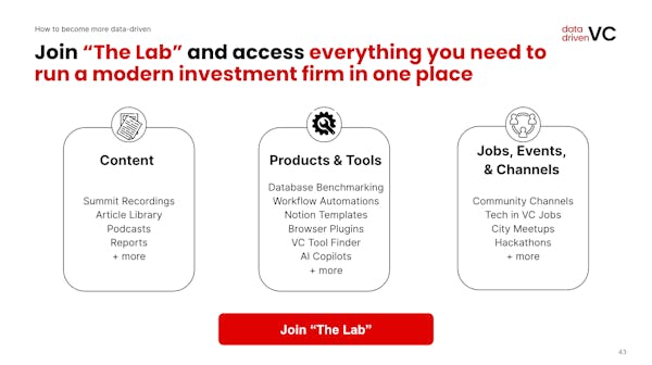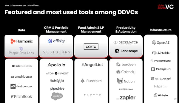 Join 22k+ subscribers of Data-Driven VC and learn how leading investors leverage data & AI by getting access to all resources including the full report on 190 VCs, 100 thought leaders, 400+ tools, and more: datadrivenvc.io
