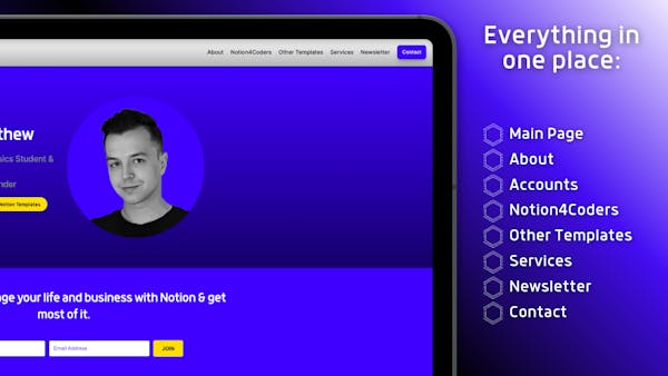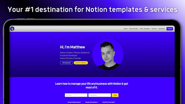 MattKubiak - personal website, as well as your one-stop shop for Notion templates & services. Many categories of templates to choose and services that will transform business to the next level. Explore now to find something for you :)