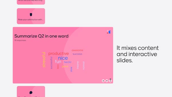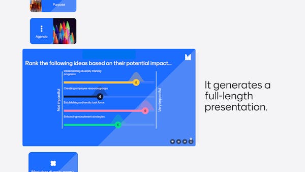 Instantly create interactive sessions that engage your meeting or classroom. Turn agendas into a first draft of a productive workshop, lecture, survey or quiz, making it faster to create participation and active contributions.