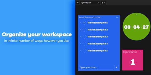 Mindfulspace is a productivity tool that serves as a space on your browser to help you stay productive, organized and focused. Have your productivity gadgets in one place: timers, habit trackers, sticky notes...etc., and configure your space however you like.