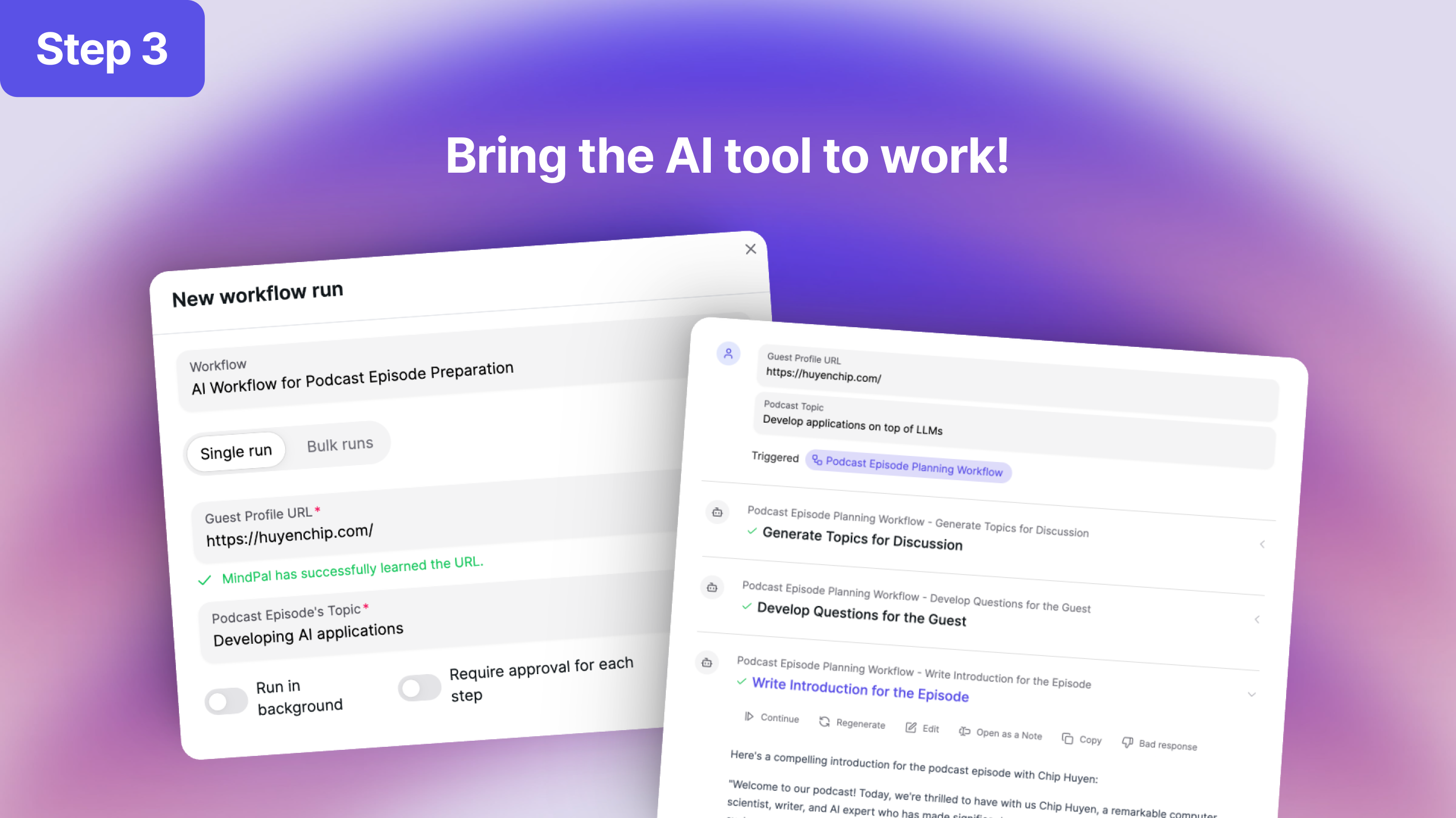 Time is money. Why waste it on tedious and repetitive tasks? With MindPal, in just 5 minutes, you can build custom AI tools that automate anything, freeing your team to focus on what truly matters. A fast track to superior efficiency.