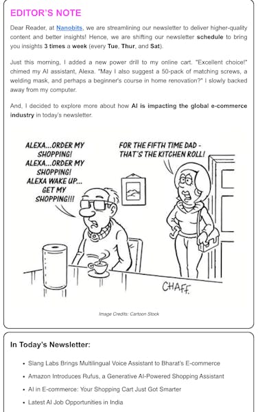 Nanobits is your AI-friendly newsletter delivering bite-sized stories from India and beyond. Dive into industry insights and discover the ABCs of AI, all wrapped up in a witty and informative way, delivered to your inbox thrice a week!