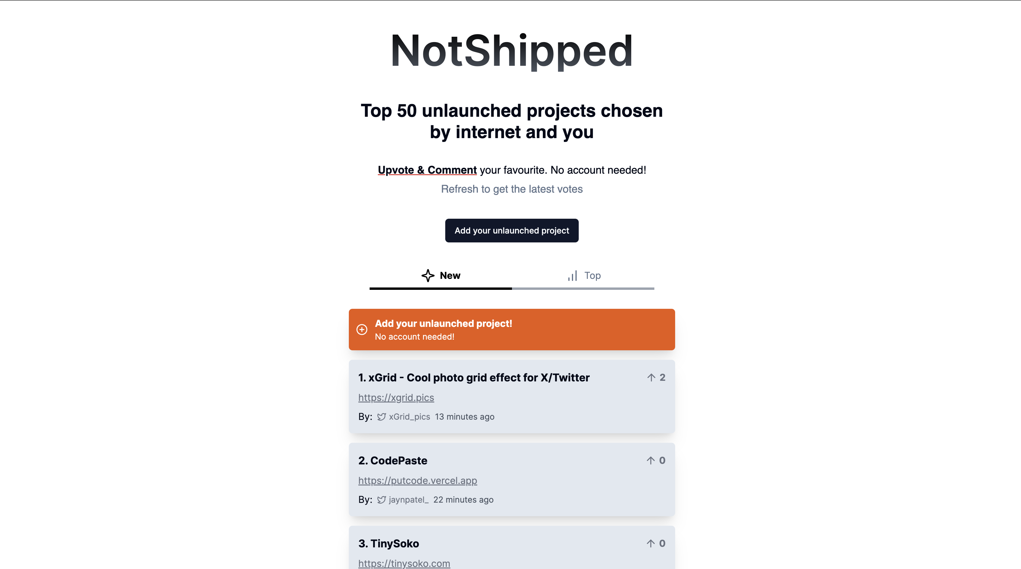 You get a crowdsourced list of the top unlaunched projects!