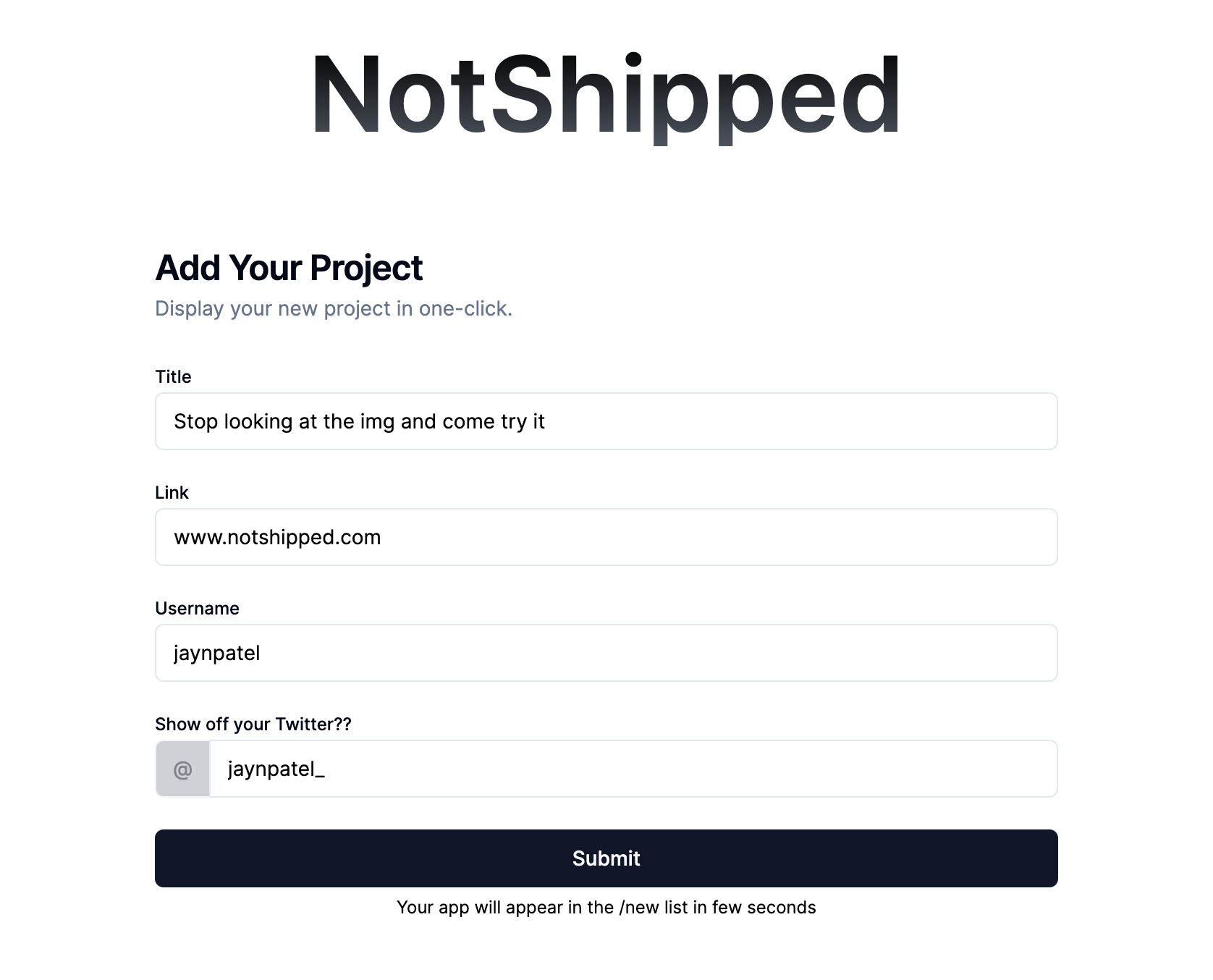 Anyone can add their project they never launched — no account needed.