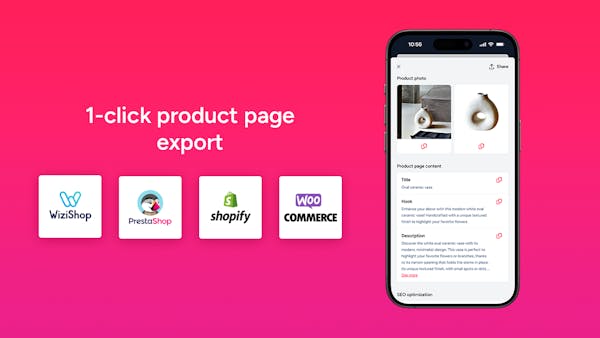 🔥 Lacking the inspiration to create your product pages and the time to manage this task? Pizi is the app you need to revolutionize your ecommerce experience. Take a photo, and let Pizi generate a complete, professional product page in less than 45 seconds.