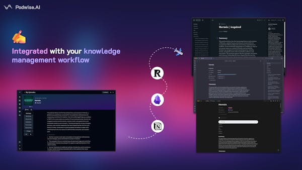 Unleash the power of podcasts with Podwise. It transcribes, extracts insights and summarizes dense episodes across tech, history, fitness. Seamlessly integrated with Notion, Readwise & more to weave podcast knowledge into your second brain.