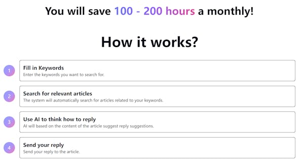 Automation Meets Authenticity: AI-Reply uses cutting-edge AI to automate your Reddit interactions, but it does so in a way that feels genuine and natural. Your Time is Precious: Save hours of manual posting and monitoring, letting you focus on what matters most—creating great content and engaging with your community. Always On: With AI-Reply, you'll never miss an opportunity to respond to a comment or join a discussion, even when you're offline. What Makes AI-Reply Stand Out?