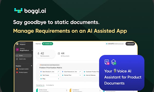 Boggl.ai is your voice AI-powered assistant for product management. Record your thoughts with a casual speech and automagically turn them into well-crafted requirements, release notes, and customer product documents. Integrate with Jira, Google docs, Notion.š Introducing Boggl: Turn Speech into Professional Product Documents with Gen AI! š
