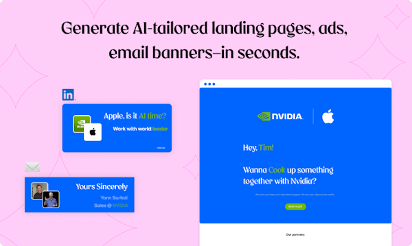 Create AI-generated personalized marketing assets (landing pages, ad images, email banners) in minutes for your key targets (accounts, contacts, industries, personas) across multiple channels.Hey folks,