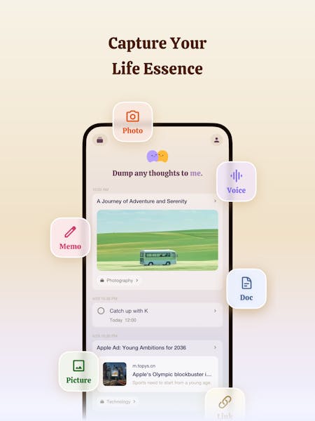 - Captures Your Life’s Essence: Summarize your thoughts, ideas, plans, life moments, and even to-do lists in any format.
