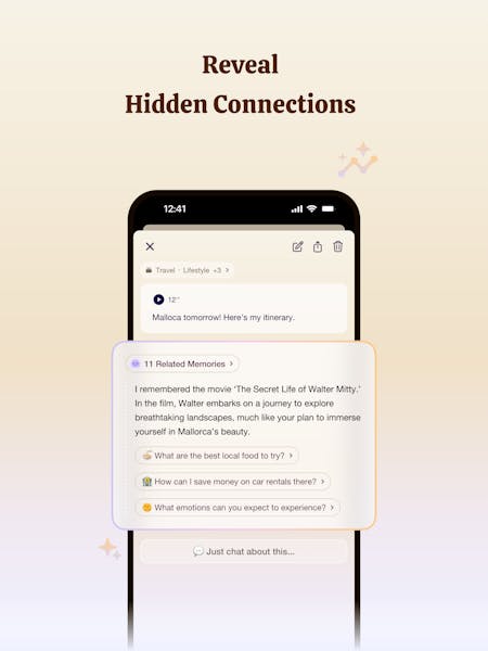- Reveals Hidden Connections: Highlight key moments and proactively connect the dots to uncover hidden themes and insights about your life.