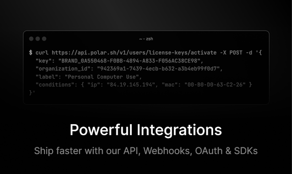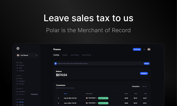 - Powered by Polar as the Merchant of Record - handling sales tax & EU VAT