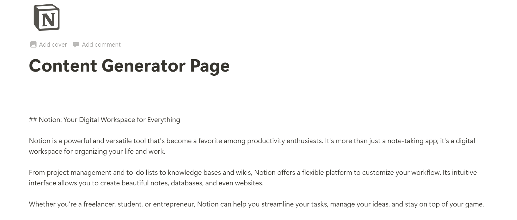 AI content generator for Notion