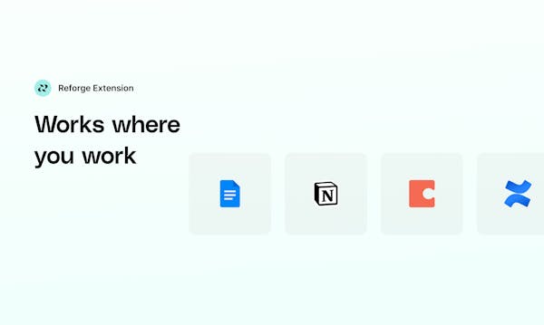 The free Reforge Extension coaches you through improving your actual work, inside your existing tools. Our drafts, feedback, and advice are backed by the collective knowledge of some of the most trusted Reforge experts in product, growth, and marketing.