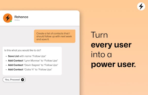 Your SaaS isn’t like the others. It’s not a micro-SaaS or a minimalistic CRM. It’s a hardcore piece of software that people use to get things done. Rehance is the AI copilot that will 10x your users’ efficiency by automating away all repetitive tasks.