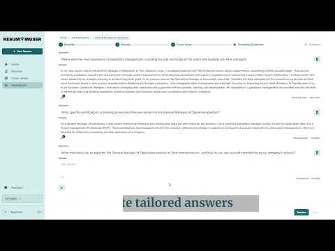 ResumeMuser is a resume management and job application enhancement tool. The current version helps create and manage resumes and cover letters. It also lets users prepare for job applications and helps answer pre-interview questions.
