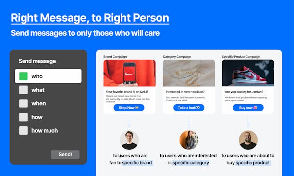 Join new era of CRM marketing with AI-based messaging platform: Sendi. Sendi allows you to create & send hyper-personalized notifications with ‘just one click’. Don’t stick to endless A/B tests. Let AI personalize.