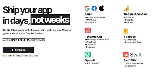 The Swift boilerplate with all the stuff you need to get your app in front of customers. From idea to production in 5 minutes.