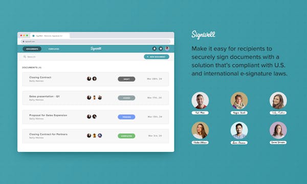 Getting your documents signed should be easy and affordable, without any hassle. Simplify the document signing process and spend less time chasing signatures with SignWell’s legally-binding e-signature solution. Over 61,000 businesses served and counting!